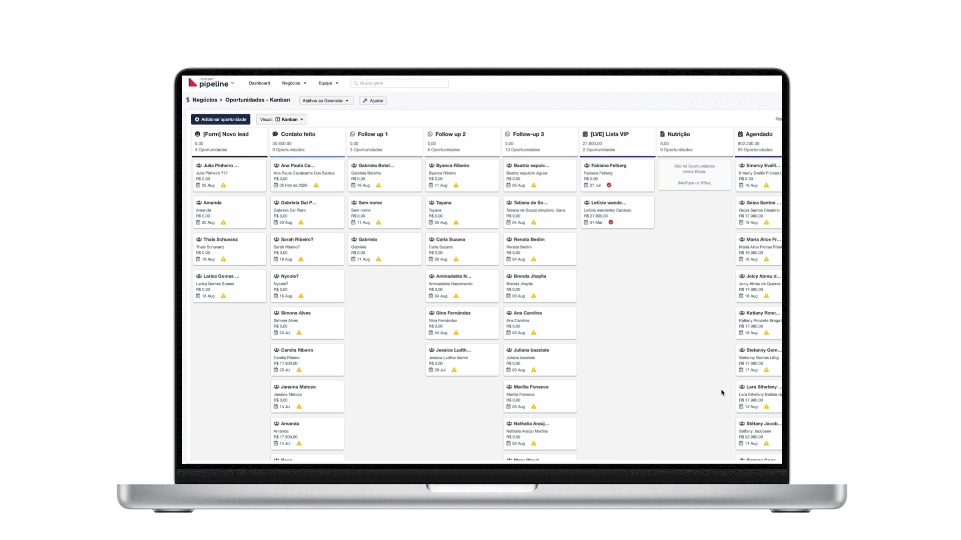 Tenha uma visão clara e organizada de toda a jornada do seu paciente, do primeiro contato ao pós-tratamento, com rastreamento e monitoramento em tempo real.